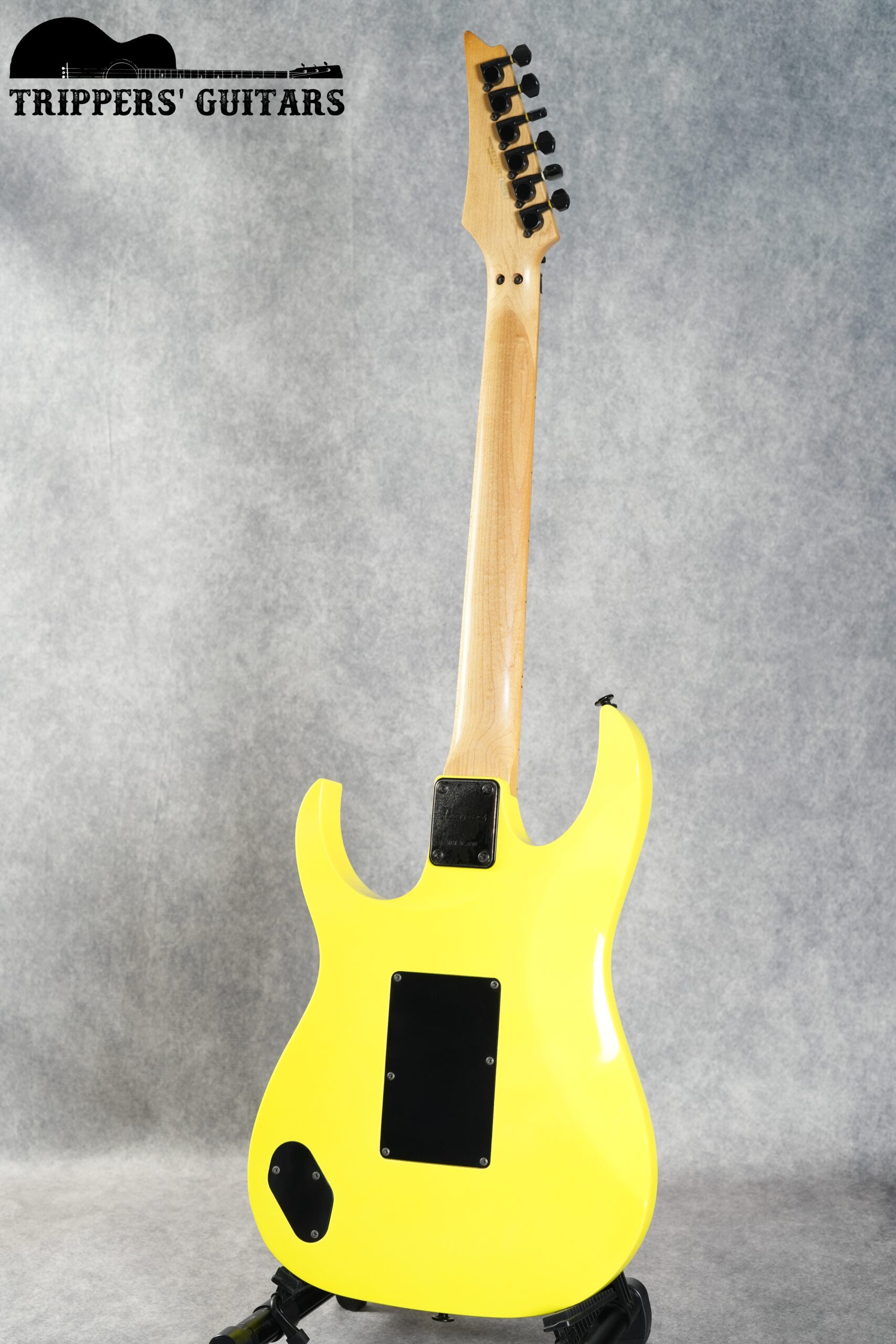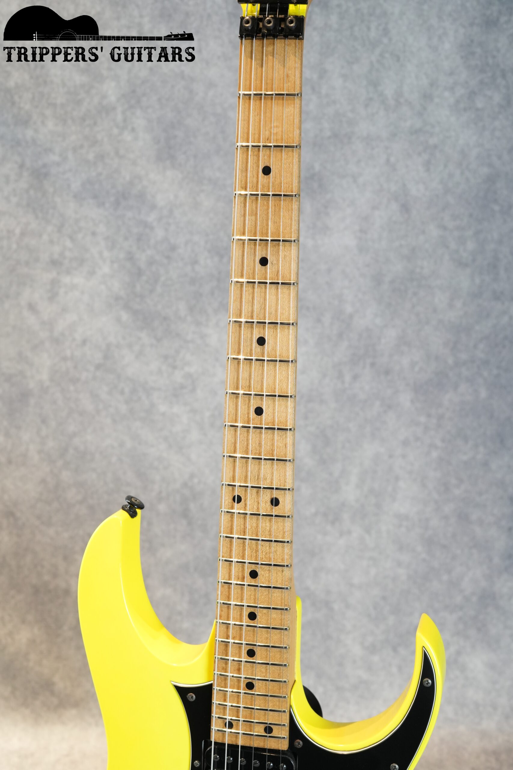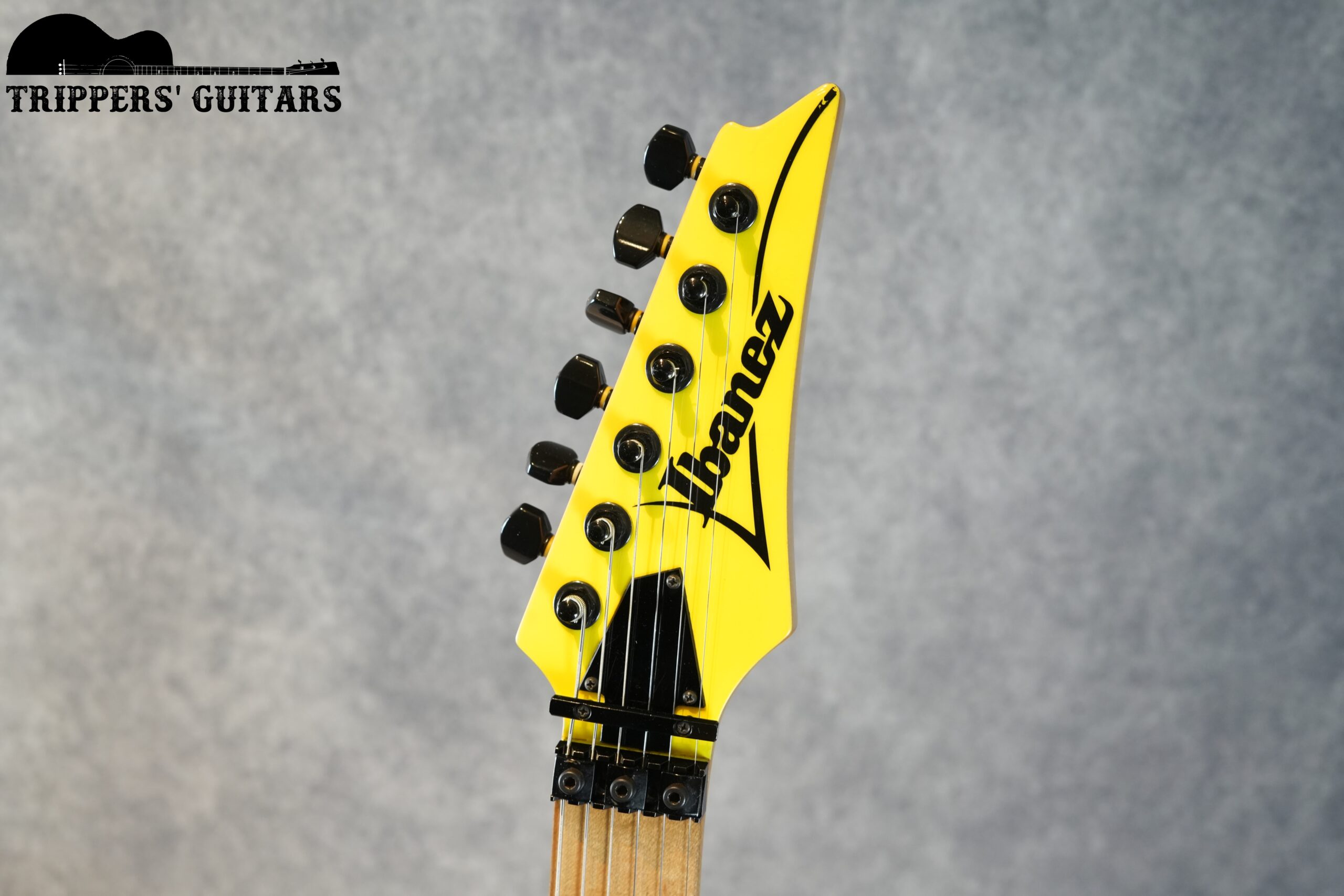 ヘッドも同じ黄色いカラーで、黒のIbanezロゴ。
