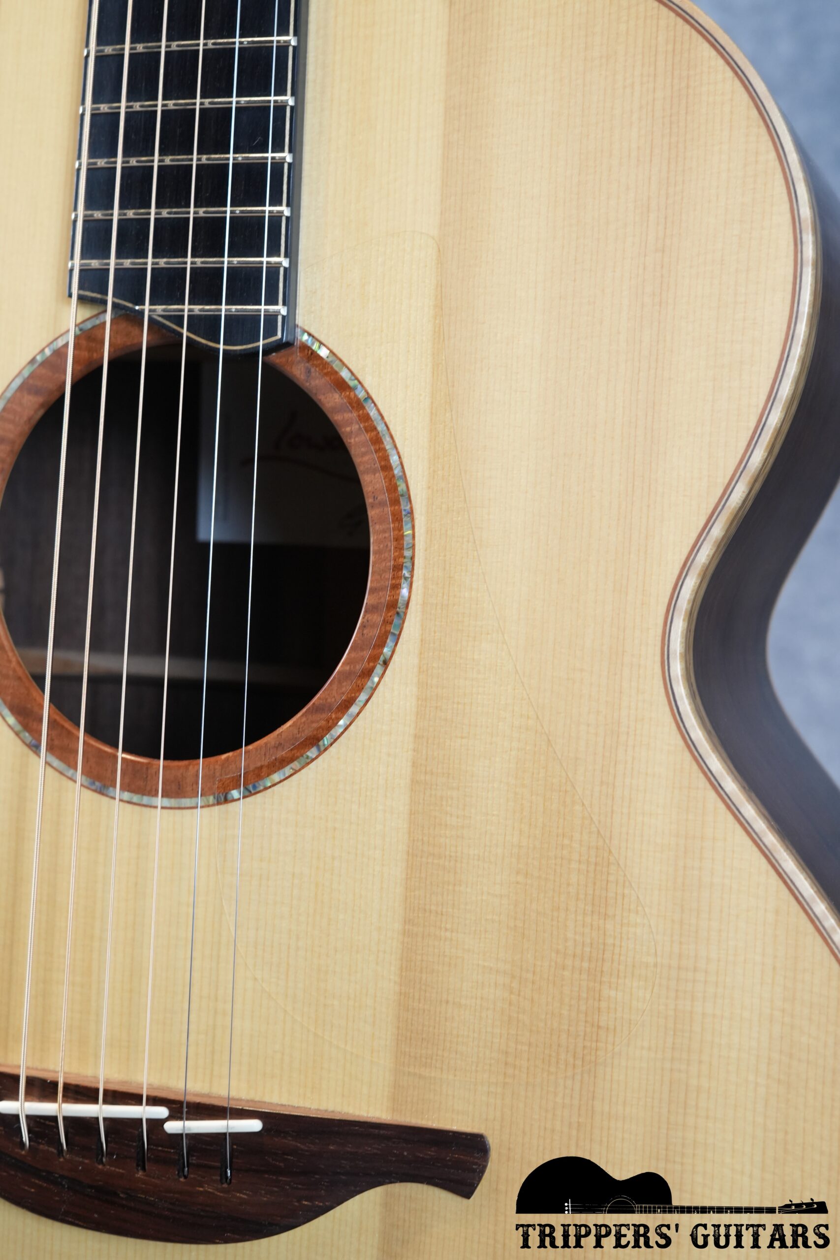 マダガスカルローズウッドS/Bですが、トップにイタリアンアルパインスプルースを使うことにより音に固さはなく、柔らかな出音。