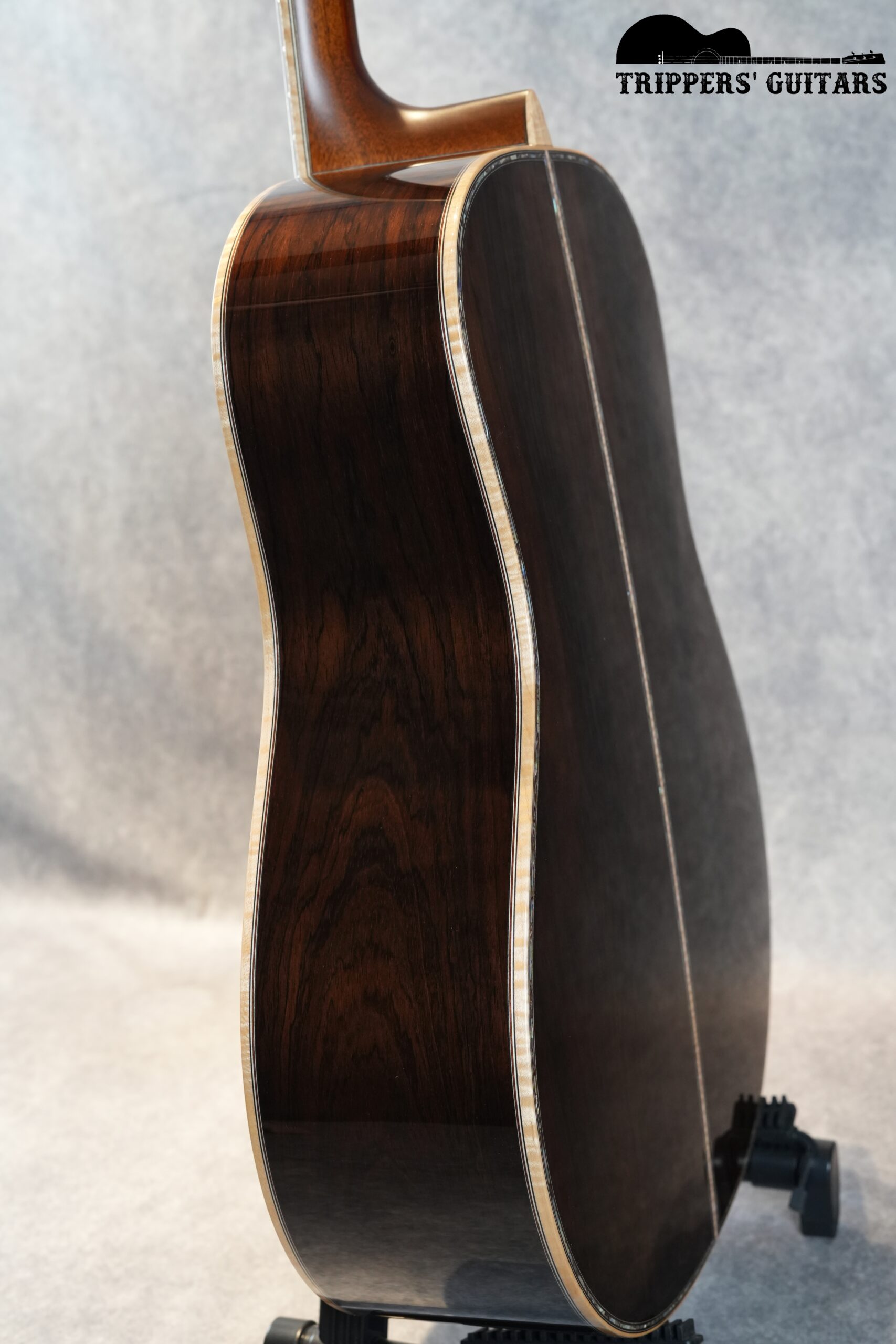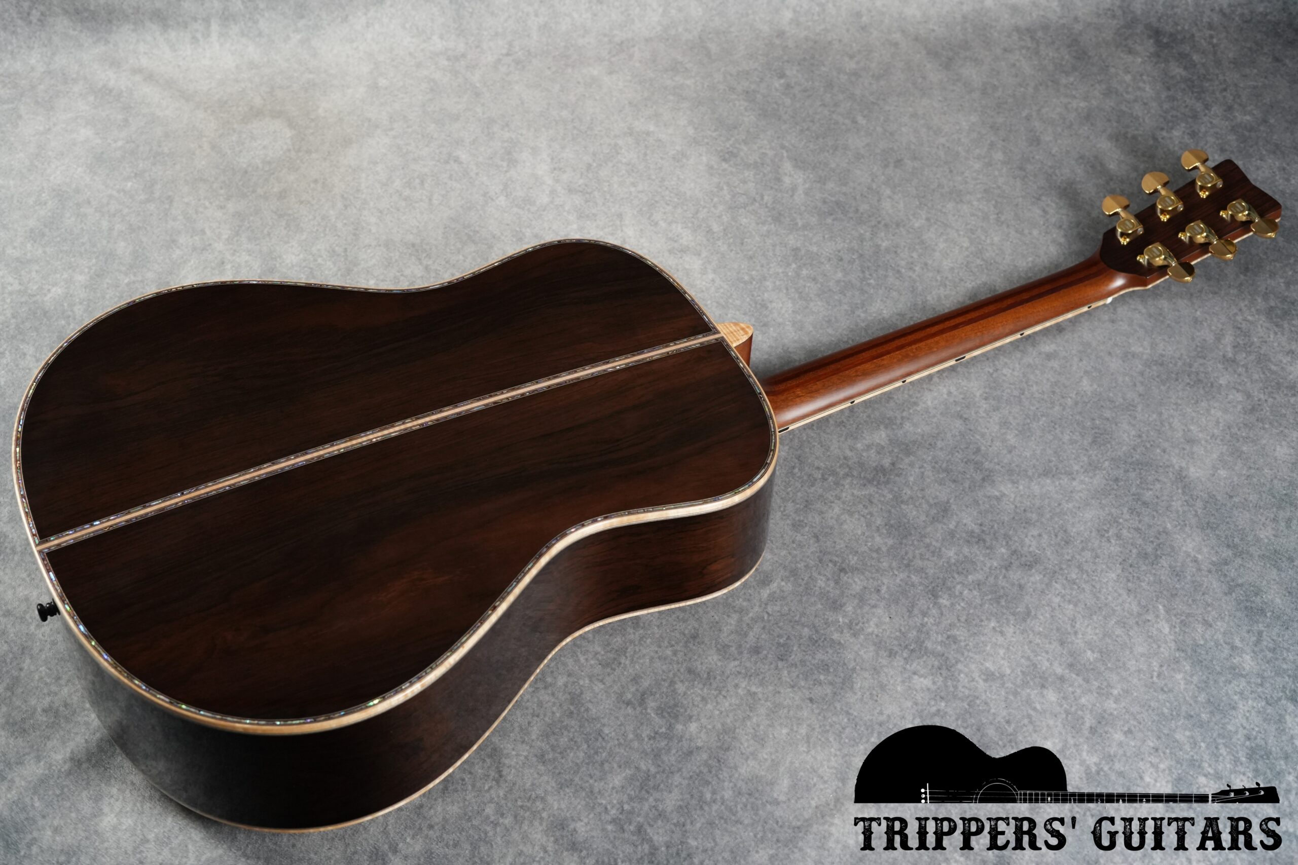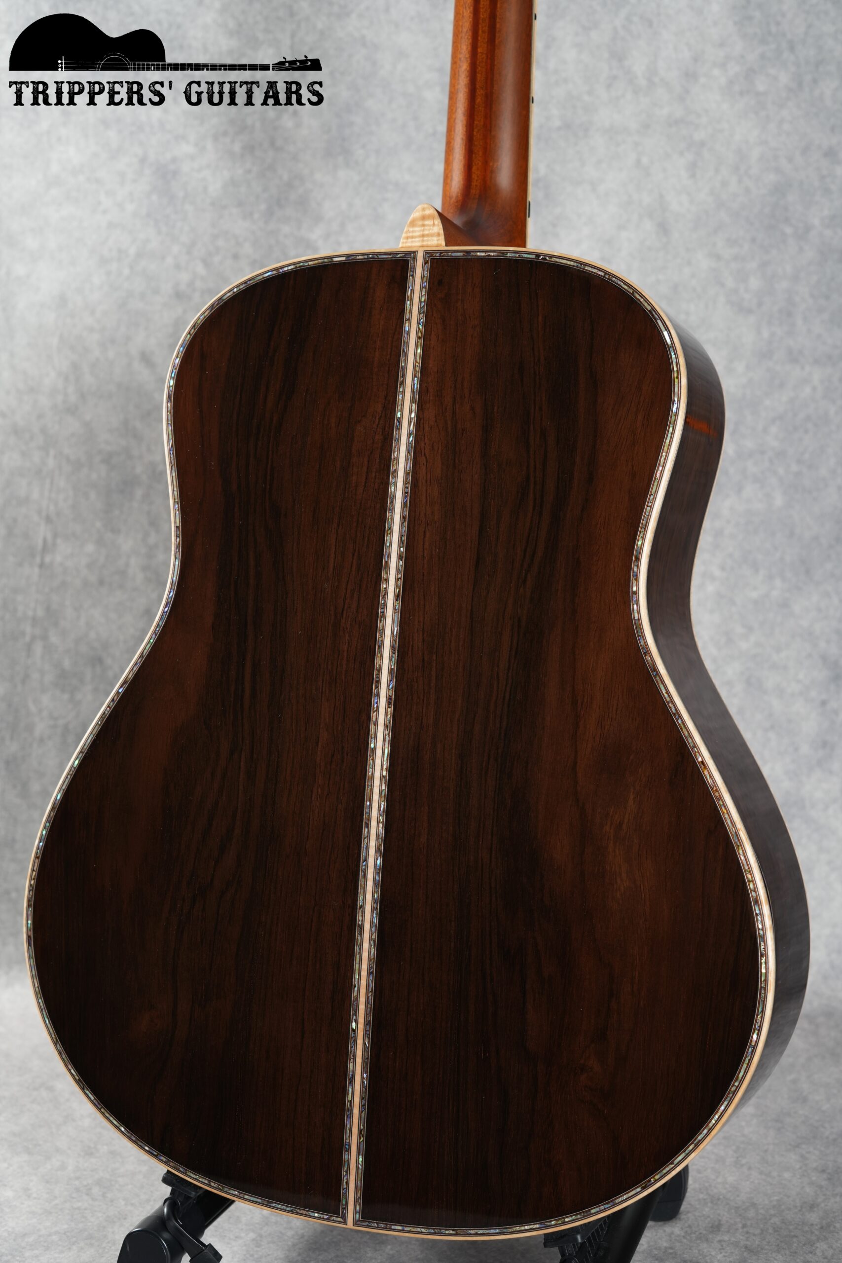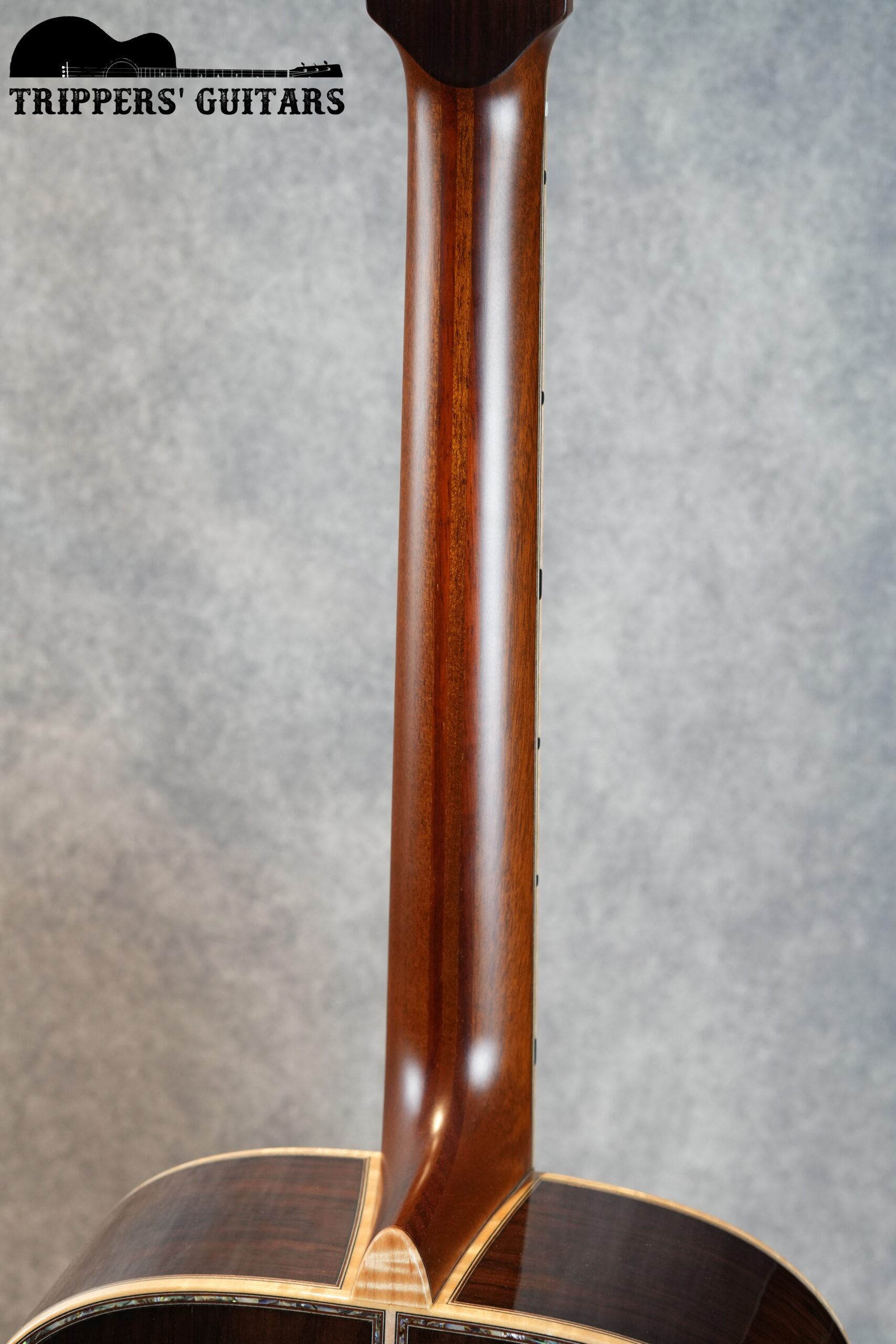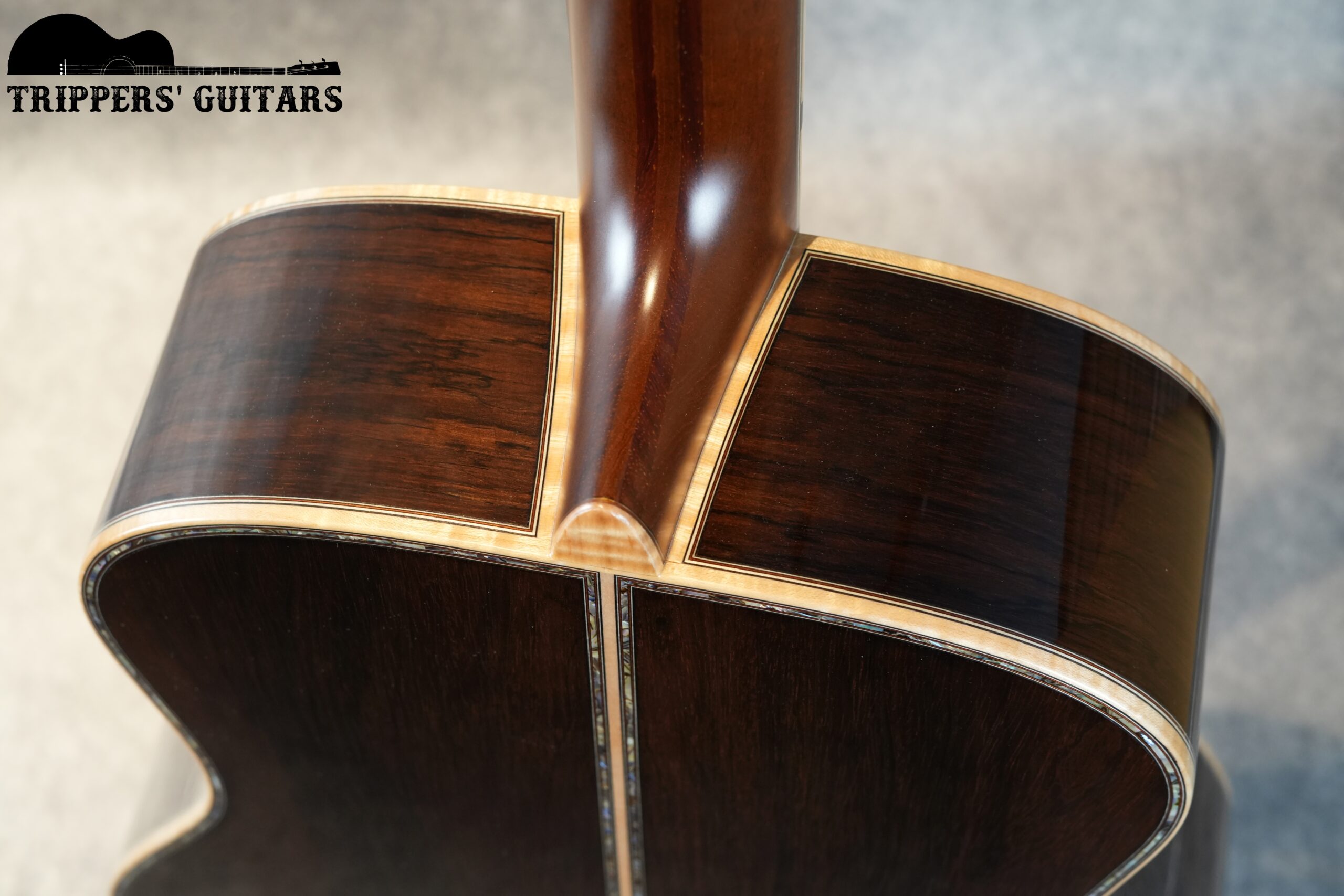 ブラジリアンローズウッドのヘッドプレートにアバロンのトリムが付いたヘッド。